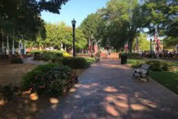 Community park in the center of Marietta Square hosting concerts, markets, and festivals.